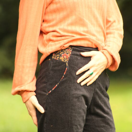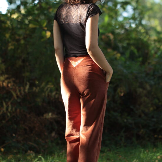Je m’efforce d’être au plus près des physicalités de chacune, en proposant des variantes sur la longueur des jambes, la hauteur de ceinture, ou d’autres ajustements sur demande. Parce que chaque corps mérite un vêtement qui lui ressemble.