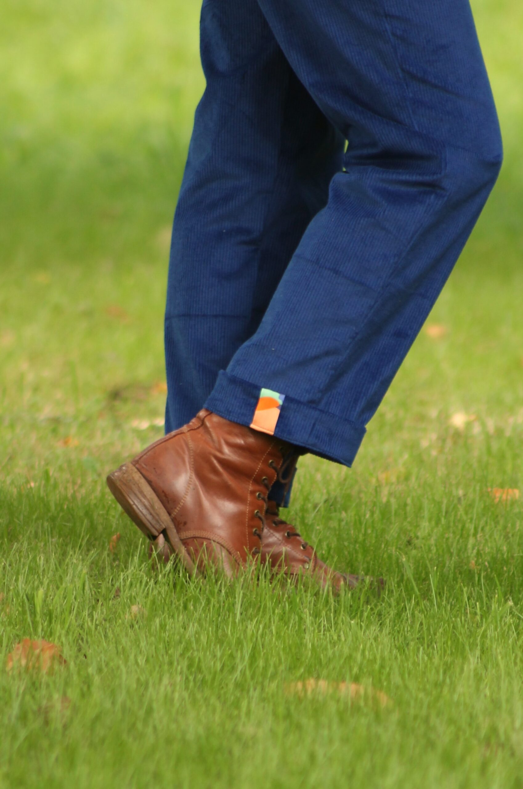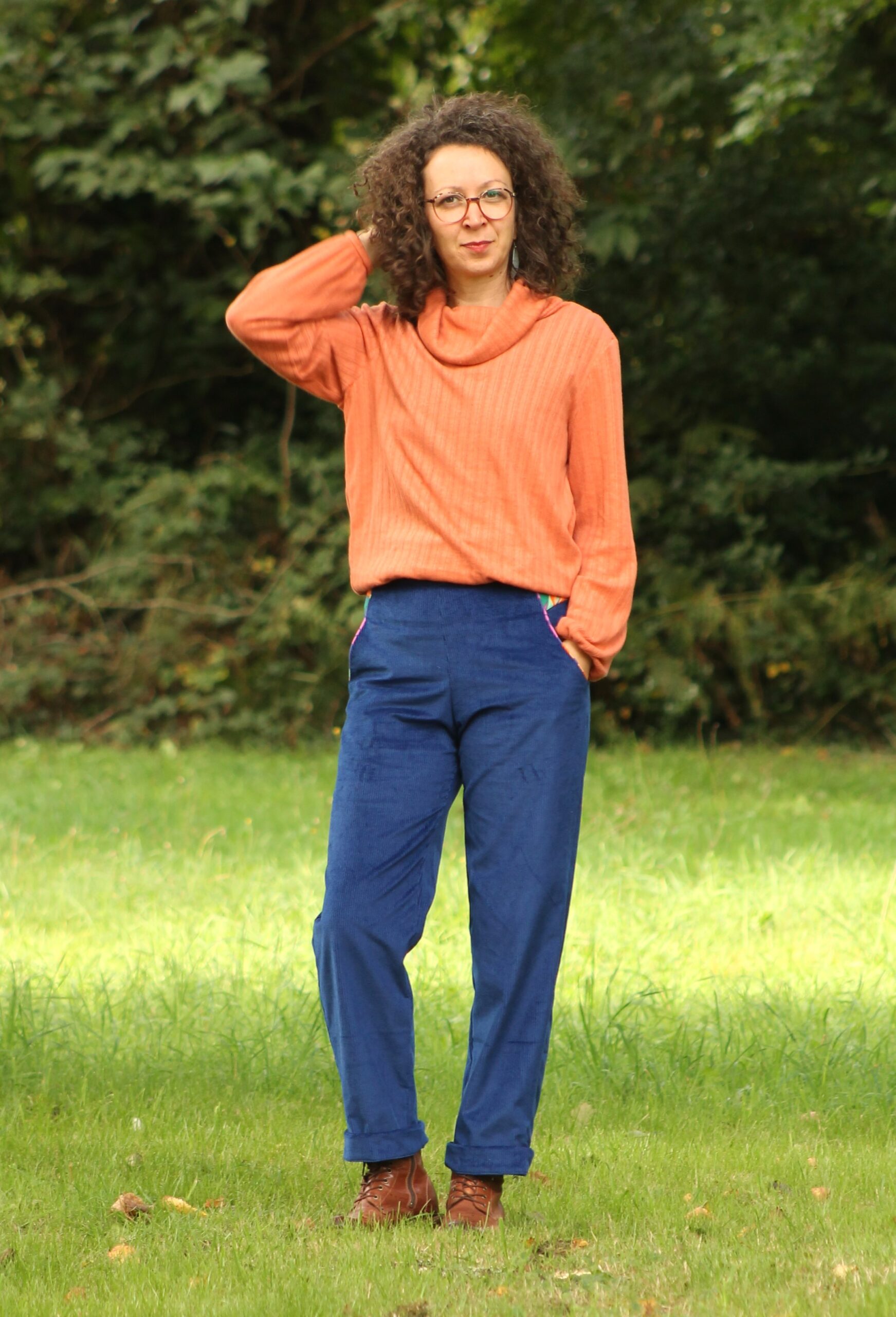 Une coupe large au bassin qui épouse la belle rondeur de la partie supérieure de notre fessier et un revers qui marque joliment le bas du pantalon.