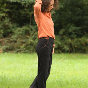 Pour prendre vos mesures, positionnez le bout d’un mètre à l’endroit le plus étroit de votre buste, la taille.  Prenez la mesure jusqu’au sol, le long de la jambe. En comparaison avec la valeur de référence, soit 105 cm, choisissez la longueur de jambe qui vous correspond.
