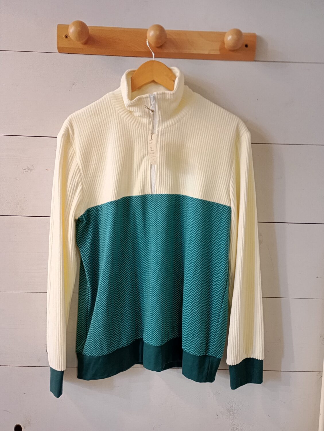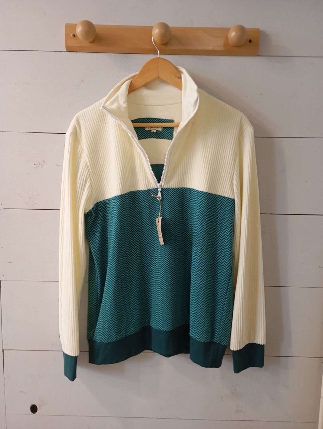 Elégant et confortable, dans son duo vanille/émeraude, c’est un sweat que vous ne quitterez plus…!